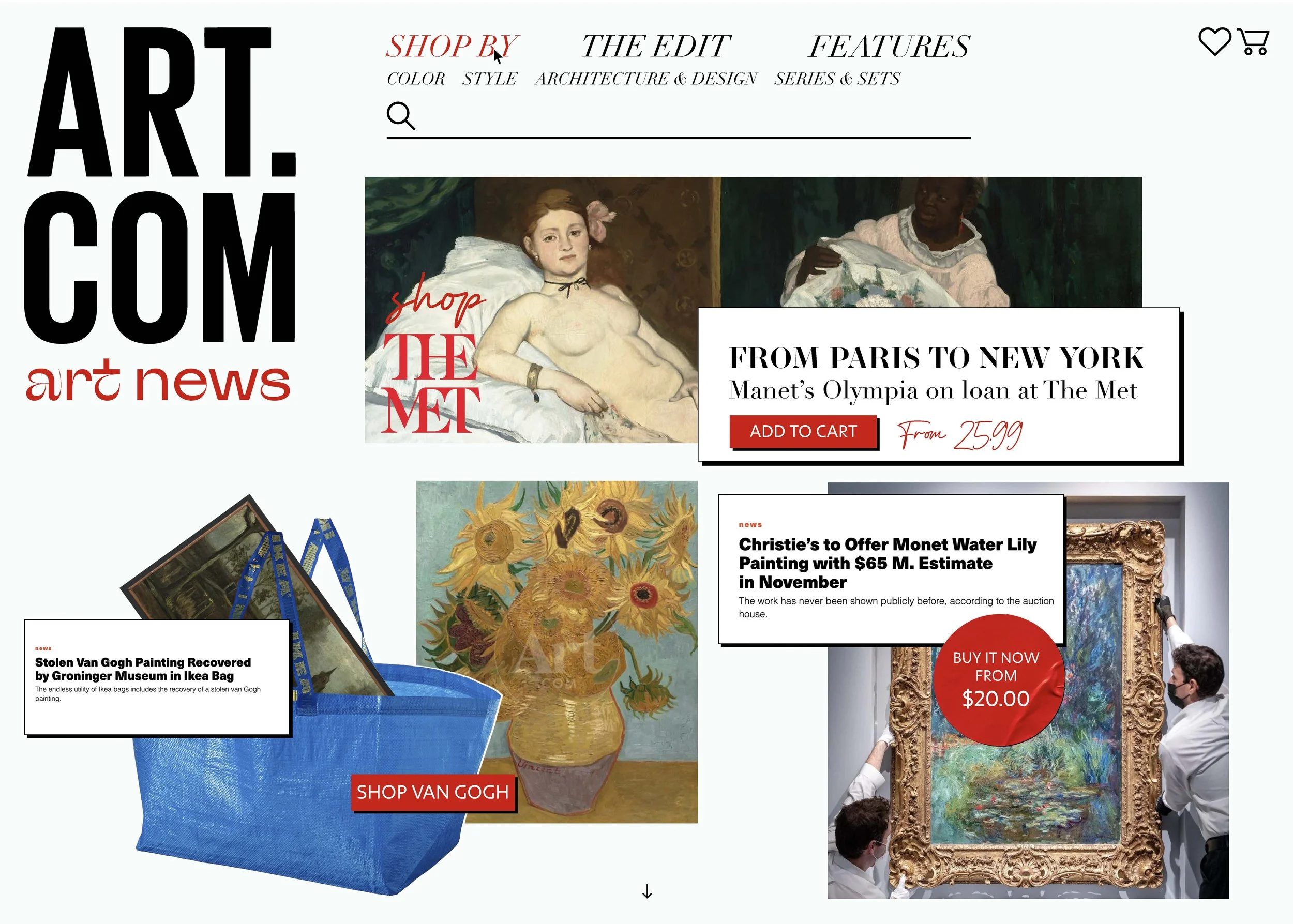 Brief:Lead the visual and verbal rebranding of Art.com for an acquisition pitch, defining a new creative direction across, identity, voice and design.